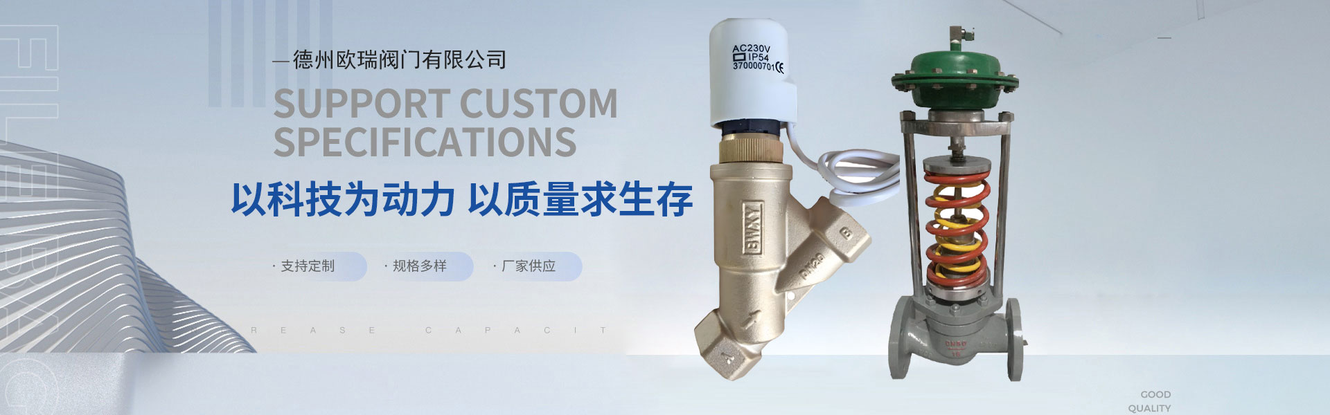 公司以科技為動力,自主研發生產各種電動閥系列產品,自力式產品系列,氣動閥系列;并與西門子、丹佛斯、霍尼韋爾等一線品牌為戰略合作伙伴